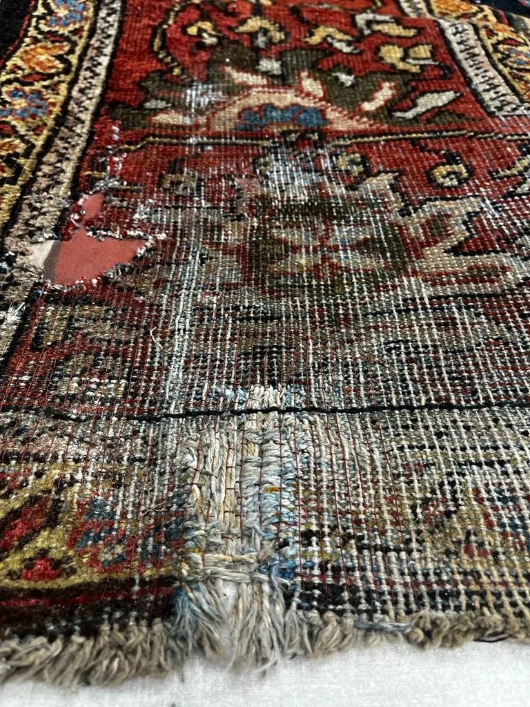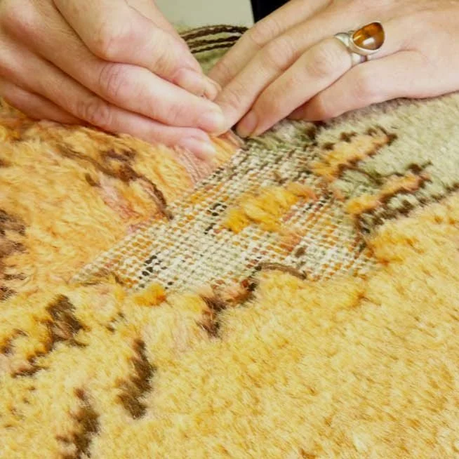 We offer expert restoration services for handmade Oriental and European rugs and carpets, from minor repairs like stabilising damage and rebinding worn side cords to extensive reweaving of large holes. Our aim is always for ensuring minimal intervention and preserving as much of the original textile as possible. Each rug is assessed for its condition, value, and future wear, with all work carried out by hand. We provide advice on underlay and aftercare, and offer on-site assessments, courier services, and preliminary estimates .